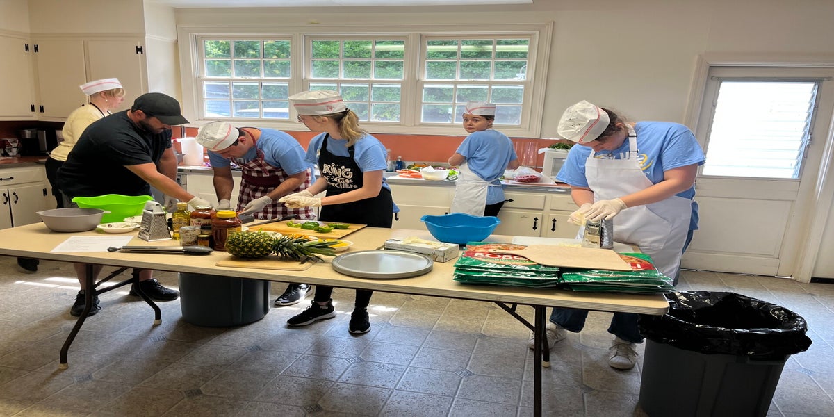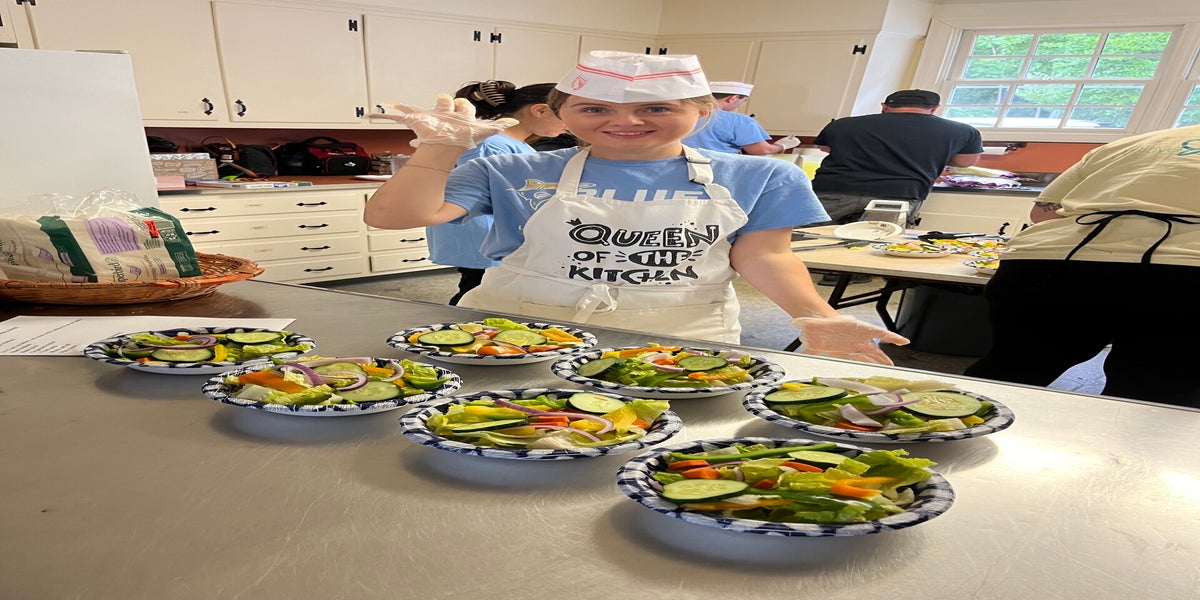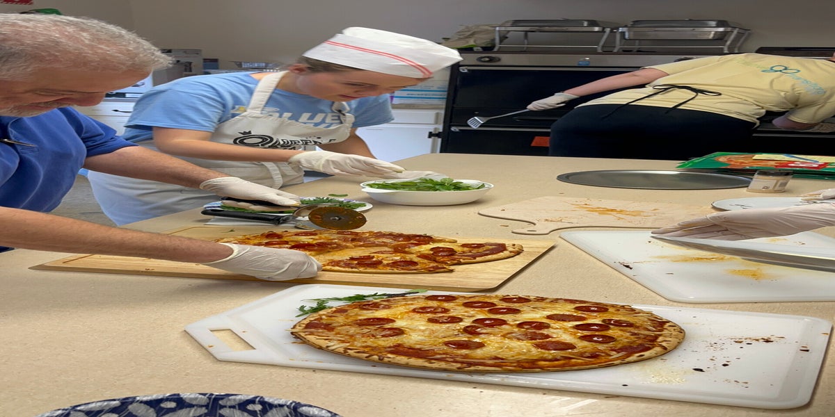 On Friday August 4th the first year students of PTW orchestrated a fantastic grand opening of a restaurant called Pizza This Way. The event was to honor the second year students of PTW and to celebrate this group for accomplishing their upcoming graduation taking place this September. Students from the first year have been working throughout the past two weeks to formulate menu ideas, graphic design for logos and the print design of the menu, marketing, and creating fun commercials, researching what tasks particular job positions carry out in a restaurant business and watching food and kitchen safety videos to learn safeguards of this setting. Well game time arrived today and we were ready. Students met Ms Alyssa of Mimi’s Kitchen of NY who led the management of our kitchen which is located at the Brookville Church. We used the kitchen and community room for this “pop up restaurant” thanks to Reverend Vicky and Linda who welcomed us with open arms and were so wonderful to us all. Reverend Vicky even stopped to meet and say hi to everyone! We didn’t let her leave for the day without her grabbing a slice of pizza! I heard students and staff complimenting Reverend Vicky on her beautiful building and church. I will let the photos do the talking for this event which was an absolute smash. It unfolded exactly how I dreamt it up which consisted of many smiles, dancing, and a collaborative effort from everyone carrying out different important roles that made it such a smooth well organized production. Of course the DSPs such as Martha, Alex, Susan, Drew, Alyssa(yes she is a dsp as well), all gave great support to assist our students. Kitchen staff Mary, Sam, Victoria, Robbie were out of this world with their food prep skills! Quinn and Darren were waiting tables taking orders and delivering the delicious food prepared by our chefs. That pizza was hot and tasty! The house salad was prepared beautifully as well. Cara our hostess and head manager was doing everything she needed to do to make our guests feel comfortable. Cara could be seen pouring drinks for everyone and seating people as well giving out the beautiful menus that TJ created in Canva. Mc Tori and Dj Sarah were rocking the party entertaining the customers. After showing Ben’s commercial on the big screen. I handed out trophy awards to all those that played a role in this overall incredible event. Lastly, I announced all of our proud graduates and had them come up to the front to receive applauds from the crowd!